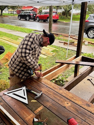 Arriving with an arsenal of tools and a few fellow members, the group was able to construct the handicap accessible ramp in one day, and in the rain. This act of kindness will offer some freedom to come and go while a prosthetic is worked and physical therapy continues.