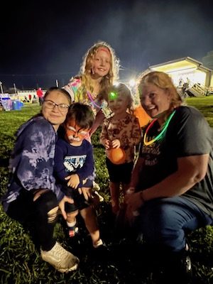 Brie, from Briezy Designs, on the right, takes a break from the Kids’ Tent with some of her young helpers during Village Appreciation Night, held Oct. 6 at the Tioga County Fairgrounds in Owego. (Photo by Wendy Post)