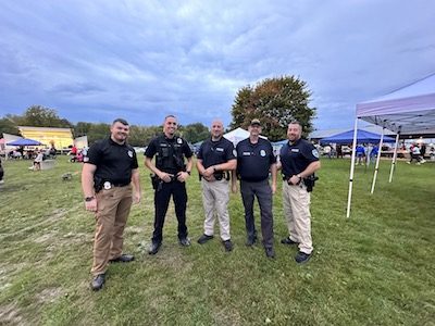 Local officers arrive for Village Appreciation Night, held Oct. 6 at the Tioga County Fairgrounds in Owego. Serving as the hosts for the event, officers, village officials and volunteers worked to bring food to the event and to assist with set up. (Photo by Wendy Post)