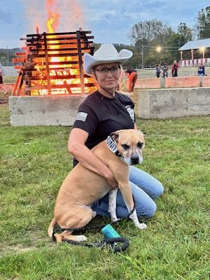 Sonya Bement is pictured with Maxie, a certified Critical Incident Therapy Dog, during Village Appreciation Night, held Oct. 6 at the Tioga County Fairgrounds in Owego. (Photo by Wendy Post)