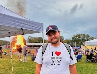 Sebby S. Truesdail was onsite to provide his online videos and recap during Village Appreciation Night, held Oct. 6 at the Tioga County Fairgrounds in Owego. (Photo by Wendy Post)
