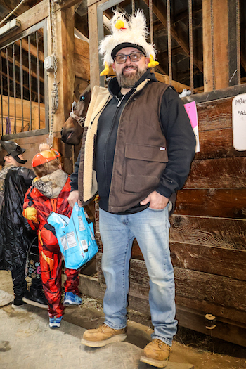 No Halloween event would be complete without a man in a chicken hat passing out candy. (Photo by Kenneth J. Waterhouse)