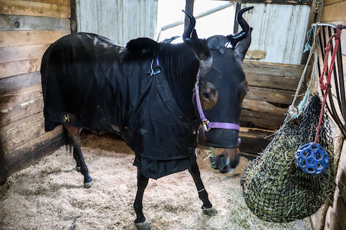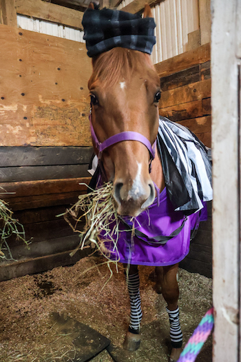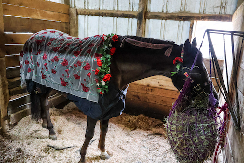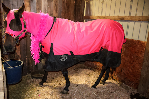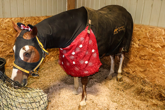 A wise horse dressed not just for the festivities, but for the chilly weather as well. (Photo by Kenneth J. Waterhouse)