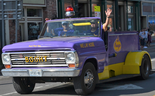 In the 1950s Owego Hose Teams paraded around in a vehicle named the “Purple People Eater,” a retired hearse. The Hose Team replaced the “Purple People Eater” in the 1970s with another retired hearse called the “Goofy Grape.”