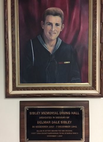 Owego Gathers to Honor Pearl Harbor Remembrance Day at VFW; A Tribute to Seaman Delmar Dale Sibley and four surviving familiesA photo and commemorative plaque for Seaman First Class Delmar Dale Sibley, Owego and Tioga County's first World War II casualty, still entombed on the USS Arizona, hangs on the wall in the VFW Post, located at 207 Main St. in Owego. Provided photo.