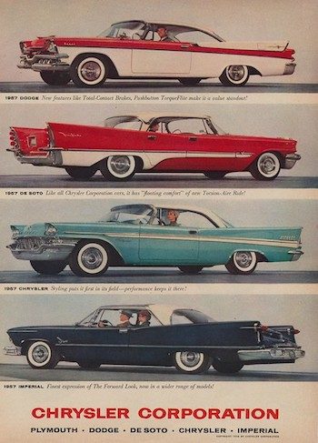 Be the first to comment on "Collector Car Corner; Chrysler’s 1957 ‘forward look’ family forced other manufacturers to re-think its design strategy"