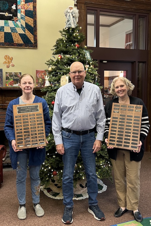 Skip Roupp recognized for library donationPictured are Spalding Memorial Library Director Tiffany Robbins, Athens Borough Mayor Francis "Skip" Roupp, and Children's Librarian Jessica White. Provided photo.