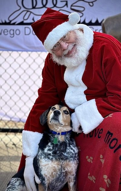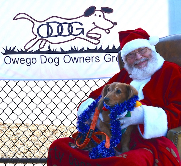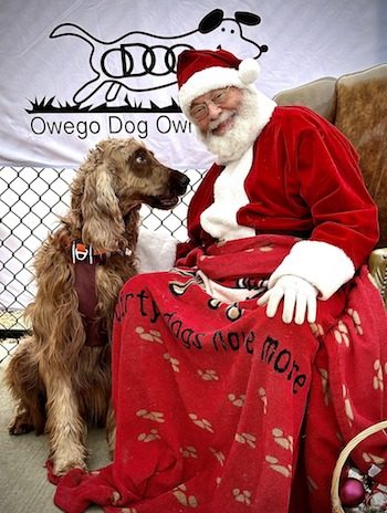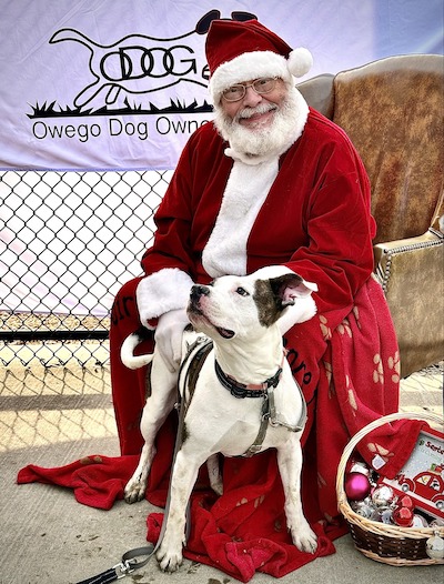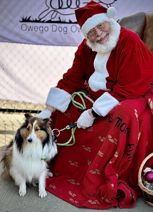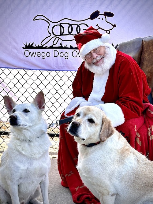 On Dec. 16, 2023, the Owego Dog Owners Group was host to “Photos with Santa”, a fundraising event for the Rebecca Weitsman Memorial Dog Park, located in Hickories Park in Owego, N.Y. Arriving was Santa, a.k.a. Wally Roper, along with Mrs. Claus, a.k.a. Mary.