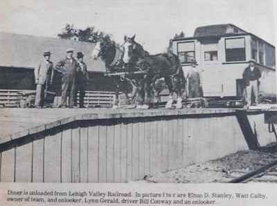 Conway was unloaded from the Lehigh RR siding and towed to 79 North Ave. on Sept. 24,1924. Provided photo.