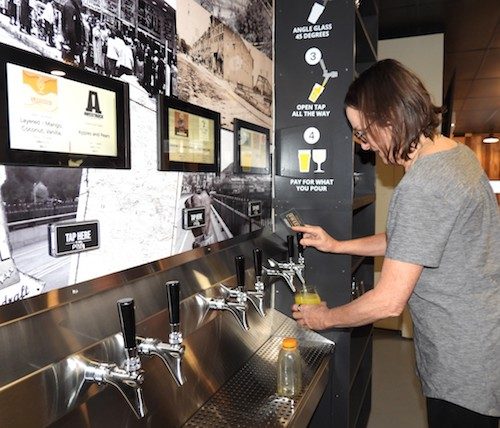 A guest adds Prosecco to a glass of orange juice at Owego Donut & Beer Co. located at 229 North Ave. in Owego, N.Y. Twenty options are available for customers at the beer wall. To see a full list on tap, or learn how it works, visit https://untp.beer/yNOvl. (JoAnn R. Walter Photo)