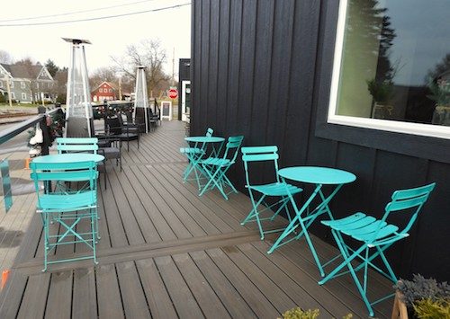 Outdoor deck seating welcomes guests at Owego Donut & Beer Co., located at 229 North Ave. in Owego, N.Y. A second outdoor seating area, and covered for weather and buffered for street noise, boasts a lighted sign, “Donut Worry Beer Happy.” (JoAnn R. Walter Photo)