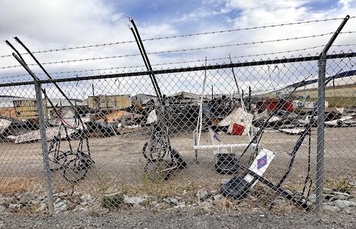 Several pieces of equipment appear to have been salvaged among the remains of Barn F, and following the fire set by Boyd H. Fenton. (File Photo / Wendy Post)