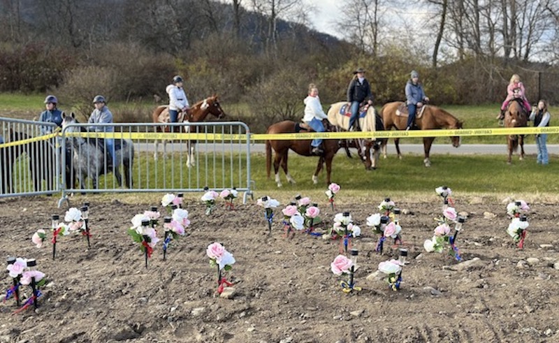 The 30-horses that perished in the Nov. 9, 2023 fire are buried along the backside of the track at Tioga Downs as a memorial. (File Photo / Wendy Post)