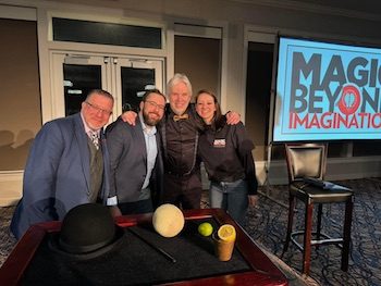 “Magic Beyond Imagination” magicians pose for a quick photo with their host following the show that took place at the Tioga Golf Club, and as a fundraiser for the Tioga County Boys & Girls Club. Provided photo.