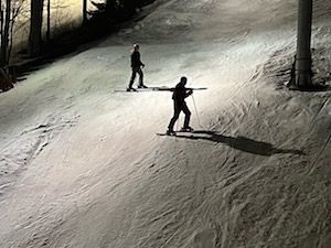 One nice aspect about staying at the location where we were skiing is that even though the sun had set, the skiing and snowboarding continued. With dinner being consumed, scouts headed back onto the slopes that were now lit up with lights for night skiing. Skiing under the lights adds another element of aesthetics and fun to round off the day. Several scouts skied until the last minute when the lift closed for the night.