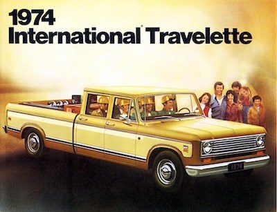 Way ahead of the competition was the 1957 International 4-door pickup, dubbed the Travelette. It is the first crew cab to appear in pickup style and seven years ahead of the competition. This factory photo features the 1974 model. (International Harvester)