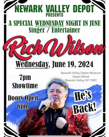 Rich Wilson, longtime favorite for many years at Depot Friday Night events, is returning for a special performance on Wednesday, June 19 at 7 p.m. The performance will take place at the location of Depot Friday Nights, at the Lehigh Valley Ray Shaver Depot in Newark Valley.