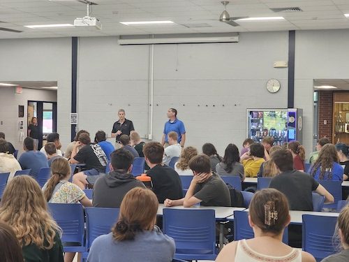 The program began in the high school cafeteria with an introduction by Travis Fisher and Jason Bellis, parents of students involved, with Fisher beginning the program by stating, “It was the worst day of my life.”
