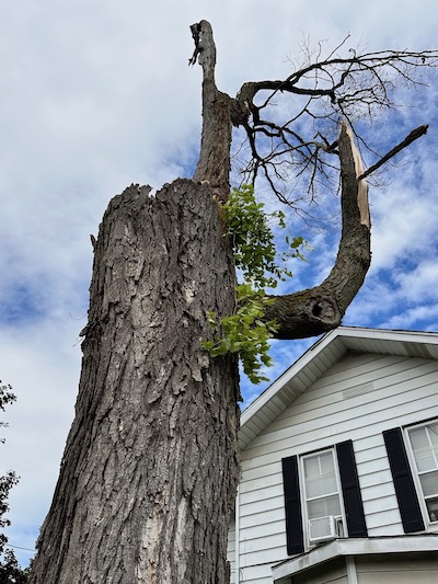 One Owego resident went outside to find a tree had landed on their pickup truck, while others worked to pile up branches and other debris damaged by the high winds.