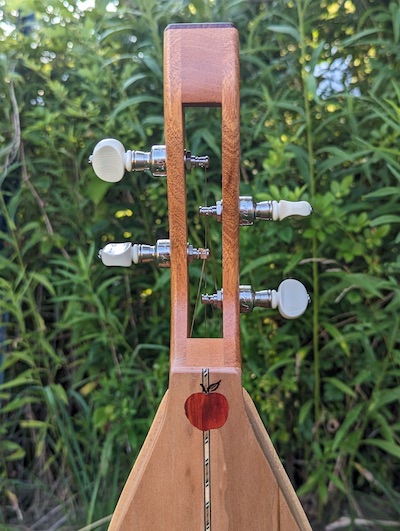 Pictured is the back of a dulcimer built by Bernd Krause. The dulcimer will be raffled off as a fundraiser, and to benefit the Newark Valley Historical Society. In honor of the Newark Valley Apple Festival, the sound holes on the instrument are apple-shaped, and then on the back is an apple inlay made of red heart. Provided photo.