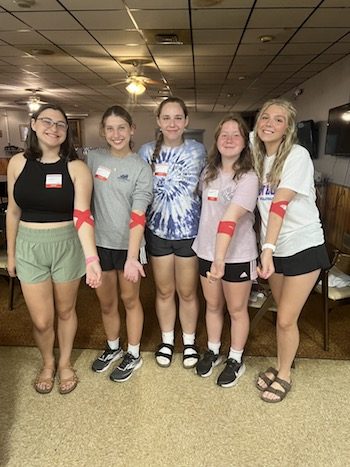 The girls from OFA Volleyball volunteer their time for the blood drive event, and they donate too, as well as their friends from other sports.