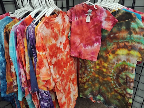 Kirk has become very skilled in the dyeing of fabric to create beautifully colored patterns on a wide variety of items including dresses, totes, and wall hangings, using many different inks and techniques such as Japanese Shibori, ice dye, and batik.