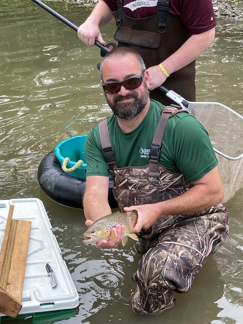 Pictured is NYSDEC Fisheries Biologist, Ian Blackburn, conducting a past trout survey on Owego Creek. Since 2023, the AL Hazzard Chapter of Trout Unlimited has collaborated with local partners such as the Tioga County Soil and Water Conservation District and DEC Fisheries to study the trout and their habitats, and to carry out projects that restore and sustain brook and brown trout populations at Owego Creek. Photo provided.