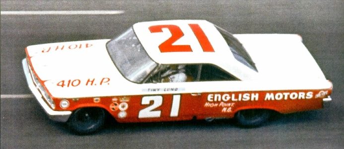 In 1963, Fords took the top five finishing positions at the Daytona 500, led by Tiny Lund in the Wood Brothers No. 21. Lund was a fill-in driver for Marvin Panch, whom Lund helped save from a burning sports car in a race at Daytona. (Wood Brothers)