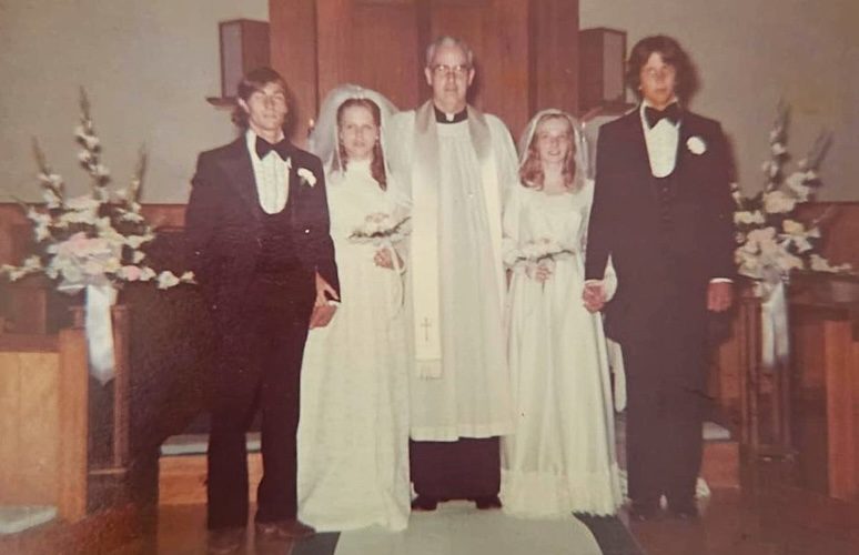 From left, Amy Short Harvey and Tina Short Barton married their high school sweethearts in a double wedding ceremony on Saturday, June 28, 1975. Now, 50 years later, the sisters and their spouses are looking forward to celebrating this extraordinary anniversary. This year, June 28 also falls on a Saturday. You could say it was meant to be. Photo provided.