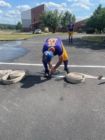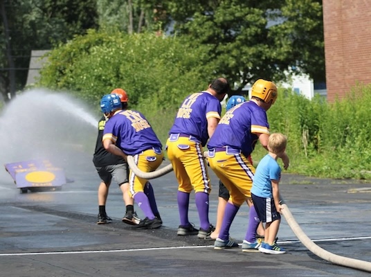 Owego Hose Teams, Inc. competed in the firematic hose races held at the 131th Annual Central New York Firefighter’s Association (CNYFA) convention last weekend in New York Mills. The races are timed events where firefighters test their skills. Teams of five members must connect nozzles to hoses, hoses to hoses, and hoses to the fire hydrant, and knock down targets in the quickest time.