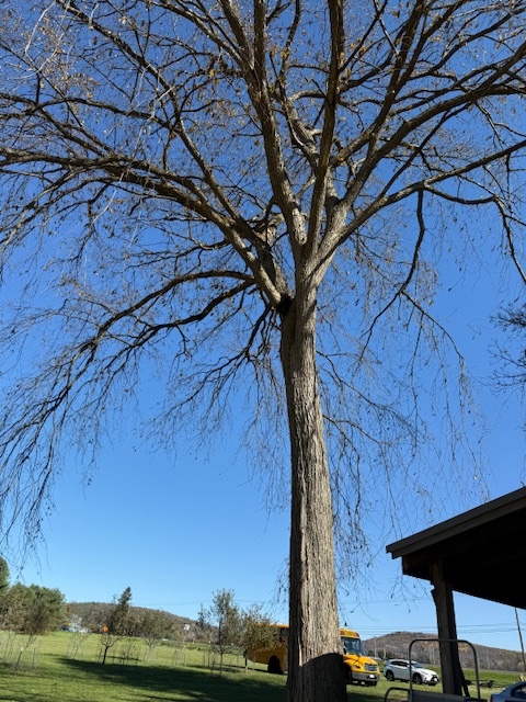 Asa is a tree that has certainly witnessed some history. It has lost some limbs over the years, but because hickory wood is so tough, it has survived countless storms over the years (including the hailstorm and near hurricane force winds from this summer) even though it stands completely by itself with no other trees to protect it.
