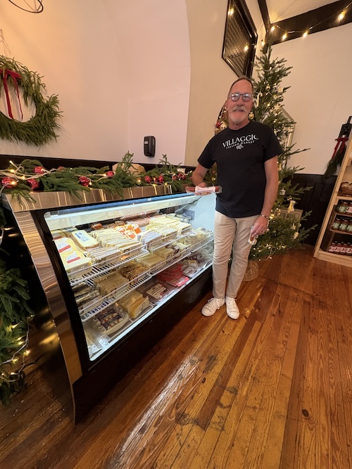 Bob Goda, one of the four partners in the Italian Market venture, is pictured near a case filled with a variety of cheeses. (Photo by Wendy Post)