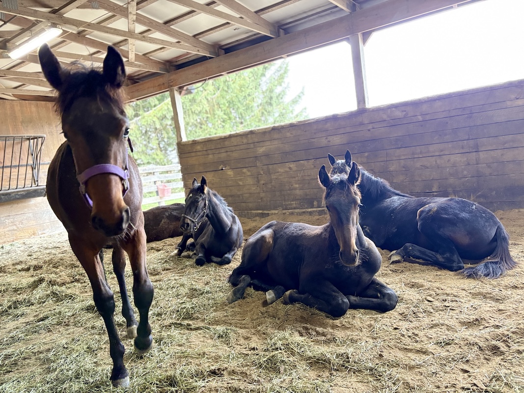 Working with a couple of extra hands, Heather Lineburg, Courtney Kinney, and Ashleigh Bailey offered a brief tour of the farm and a sneak peek into the paddock where the babies were resting, and then out to the field where pregnant mares would soon retreat for their gestation period.