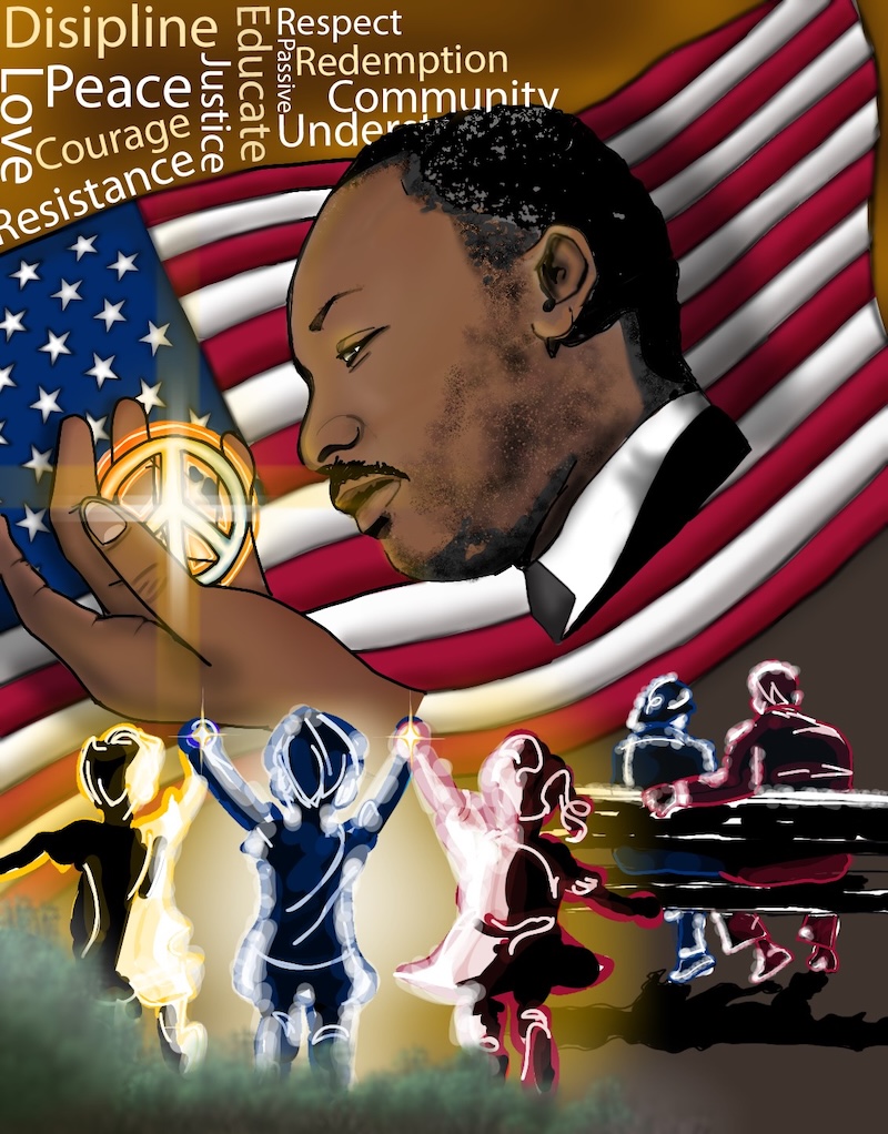 An eleventh grader from Pleasantville High School created this inspirational tribute to Dr. King and his teachings. Exhibit photo provided.