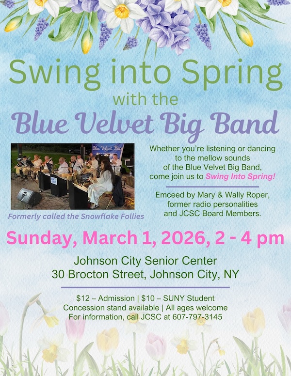 JOHNSON CITY, NY – Get ready to dust off your dancing shoes! The Johnson City Senior Center (JCSC) is thrilled to announce the return of the Blue Velvet Big Band for their upcoming seasonal showcase, “Swing into Spring,” on Sunday, March 1, 2026.
