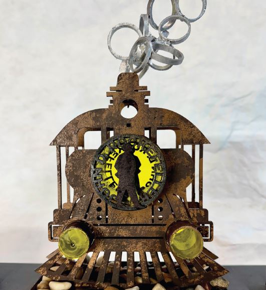 Pictured is Industrial Emergence: Power in Motion, one of five sculptures that make up “Forged by the Water.” Photo provided.