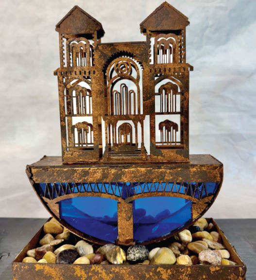 Pictured is historic architecture: bridge, canal, and river power, one of five sculptures that make up “Forged by the Water.” Photo provided.
