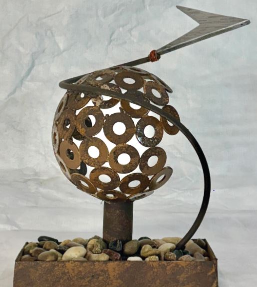 Baratta continued, “We felt ‘Forged by the Water’ best met the goals; it will block the view of the pit without completely obstructing it. If in the future the pit is developed, the pieces can be moved easily,” and added, “They are a good height and size to view while driving by. They will also use natural sunlight to illuminate at sundown and require very little site work [referring to upkeep, and no utilities].”