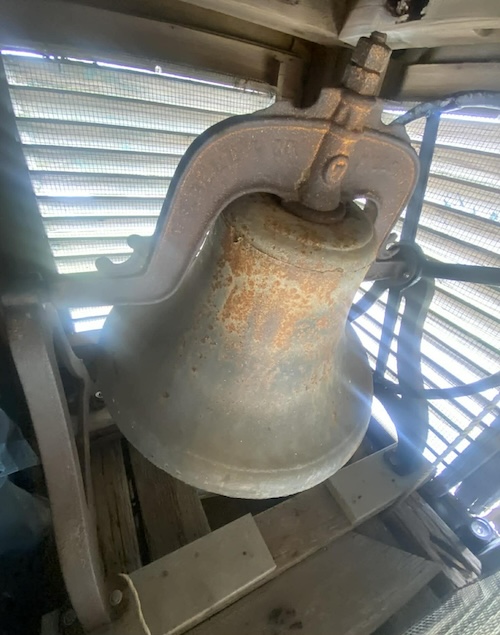 Pictured is the church bell with epaulets, a common feature of military uniforms, in honor of their support of the War effort. Photo provided.