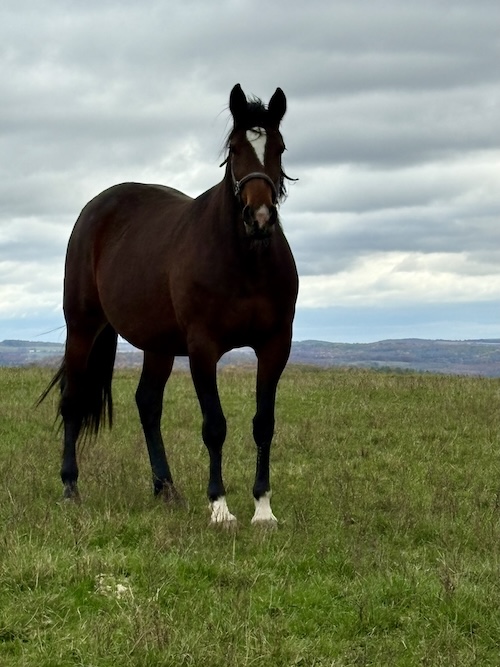 Pictured is a six-year-old Standardbred mare, Plum Wine, one of approximately 20 at Allerage Farms in Sayre, Pa. Tours to the farm will be offered this year on May 31, June 28, July 26, August 30, and September 6. The shuttle leaves from the front of Tioga Downs Casino at 11 a.m. Visit the promotions paddock table to sign up. You can view a previously published story about the farm by visiting https://tinyurl.com/ysuxhp77. (Photo by Wendy Post)