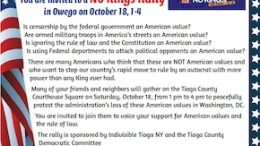 On Oct. 18, from 1-4 p.m., a “No Kings” rally will take place at the Courthouse Square in Owego, N.Y. According to the sponsors of…
